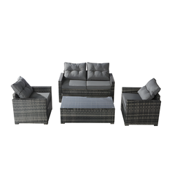 कस्टम आधुनिक 4-सीटर एल्यूमीनियम मिश्र धातु रतन सोफा बाहरी पैसो बगीचे के लिए टिकाऊ वाटरप्रूफ ए